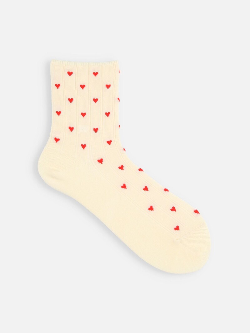 Calzini alla caviglia con un adorabile motivo di piccoli cuori allineati come pois. Realizzati in cotone misto, offrono morbidezza e buona elasticità. Il bordo elastico è morbido per un comfort ottimale.